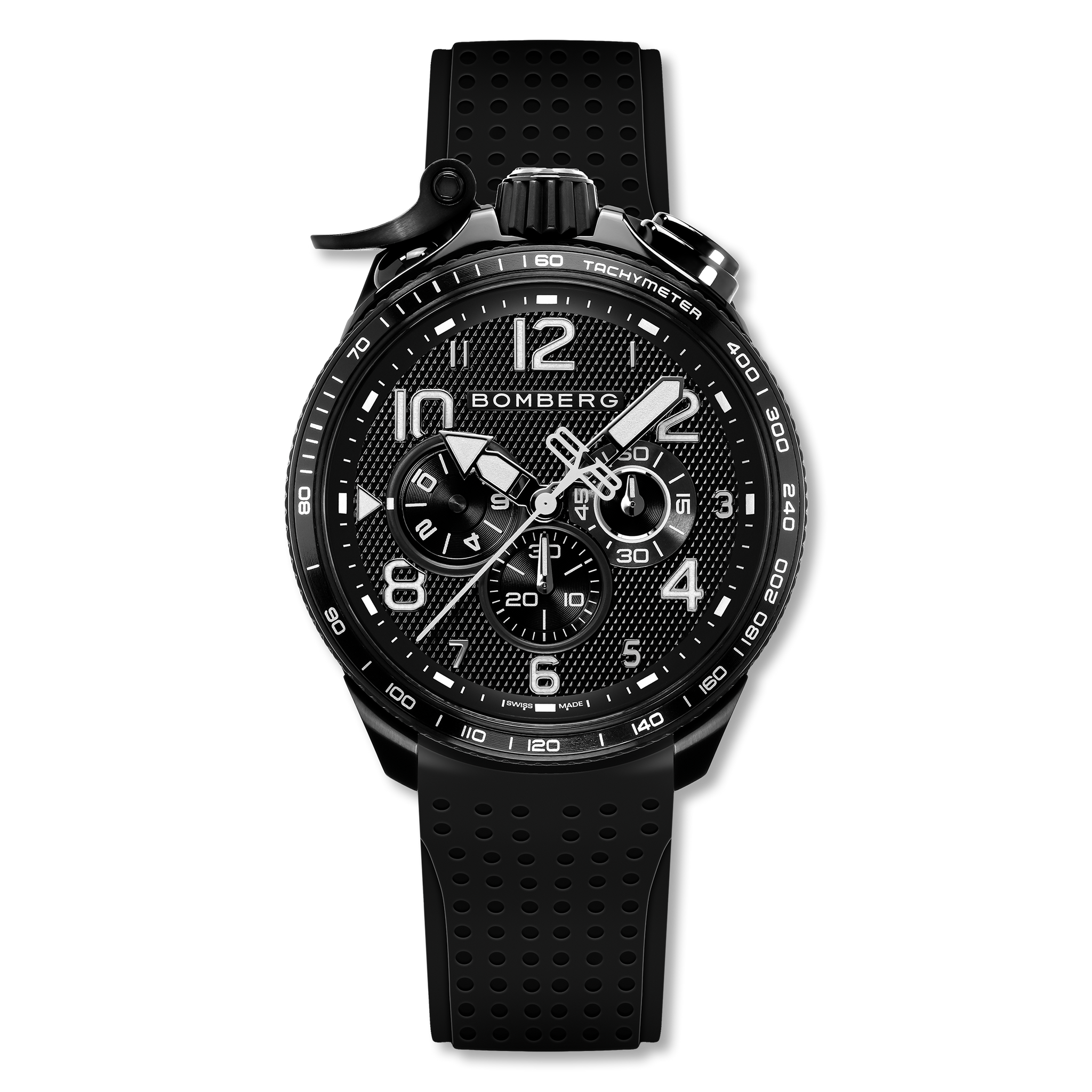 Encased in its BOMBERG watch box, this set includes a travel watch case for secure and convenient storage, a 2-year warranty card, and an additional travel pouch for the chain and medallion.