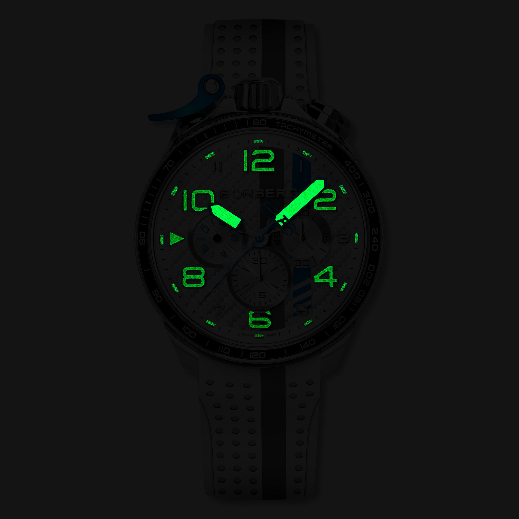 Please note: on models featuring black hands and black indexes, the Luminova is also black. Due to its darker pigmentation, it naturally emits a softer glow compared to models with clear indexes.